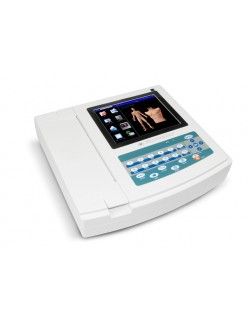ECG1200G es un electrocardiógrafo que puede recolectar señales de ECG de 12 derivaciones simultáneamente e imprimir formas de onda de ECG con un sistema de impresión térmica. Incorpora, graba y muestra la forma de onda del ECG en modo AUTO/Manual, mide y diagnostica automáticamente los parámetros de la forma de onda del ECG, solicita "Derivación desactivada" y "Falta de papel", interfaz en varios idiomas, CA/CC, selección de la derivación del ritmo, impresión el gráfico de tendencia y el histograma del intervalo PR, la gestión de la base de datos de casos.
